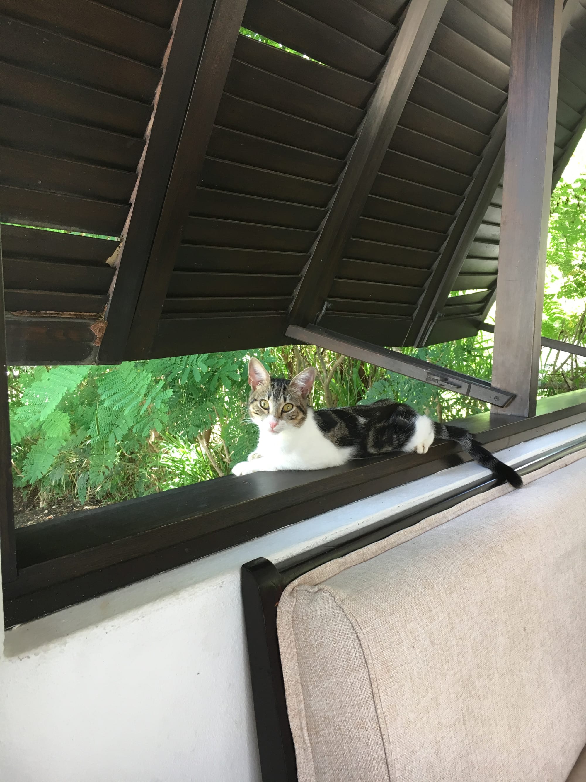 There were signs posted around my resort asking visitors not to pet or feed the community cats. They were employees on security detail, meant to stay hungry for the hunt and keep pests at bay. But there was no way I could resist when two followed me into my room one afternoon and made themselves at home.