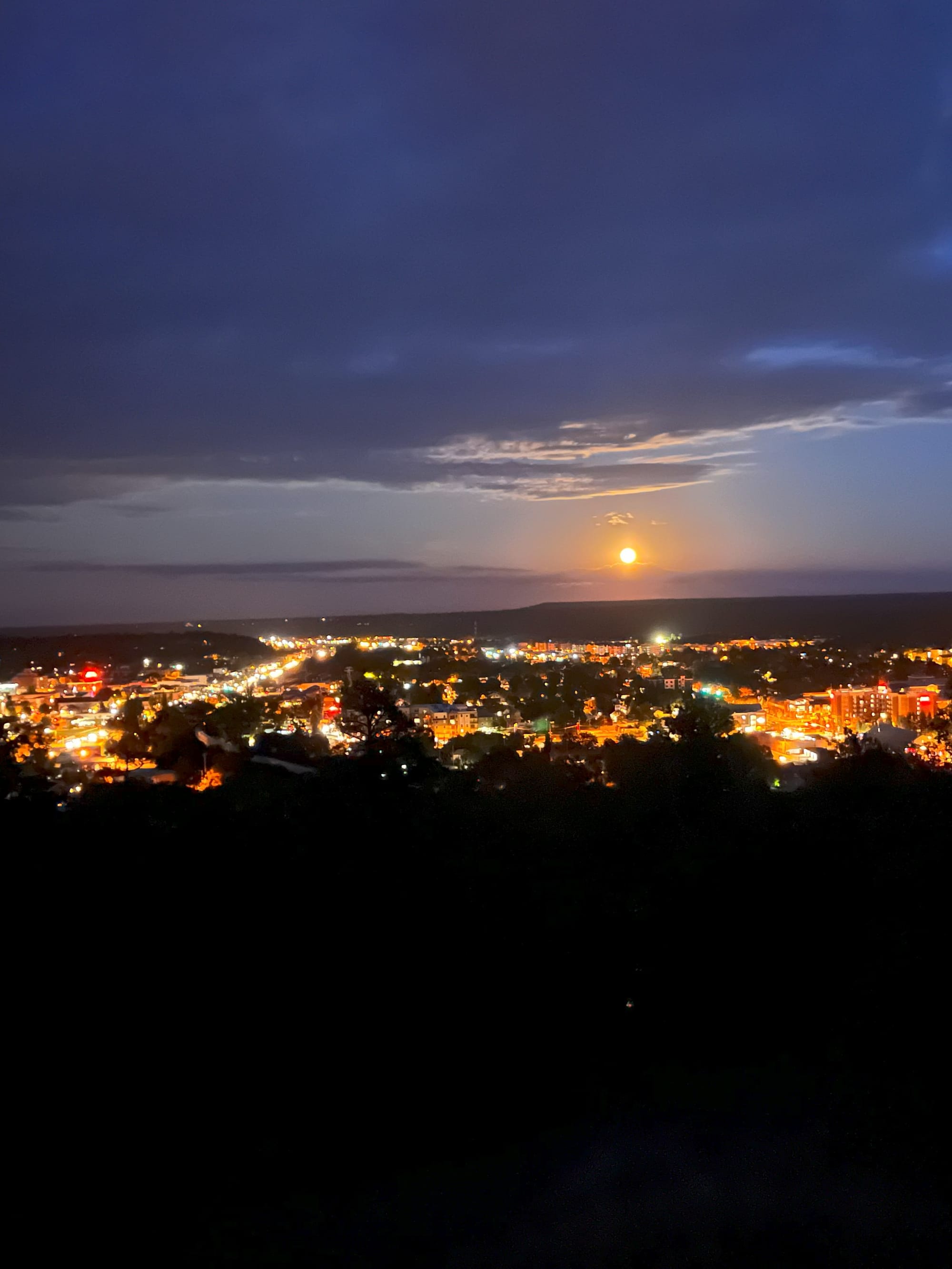 I was fortunate to be in town during a Supermoon, and driving up Mars Hill toward the observatory, I found a great turnout where I stopped to watch it rise over the city. Then I went back another, darker, night to visit the Giovale Open Deck Observatory and gaze through its six advanced telescopes at the expanding universe around us.