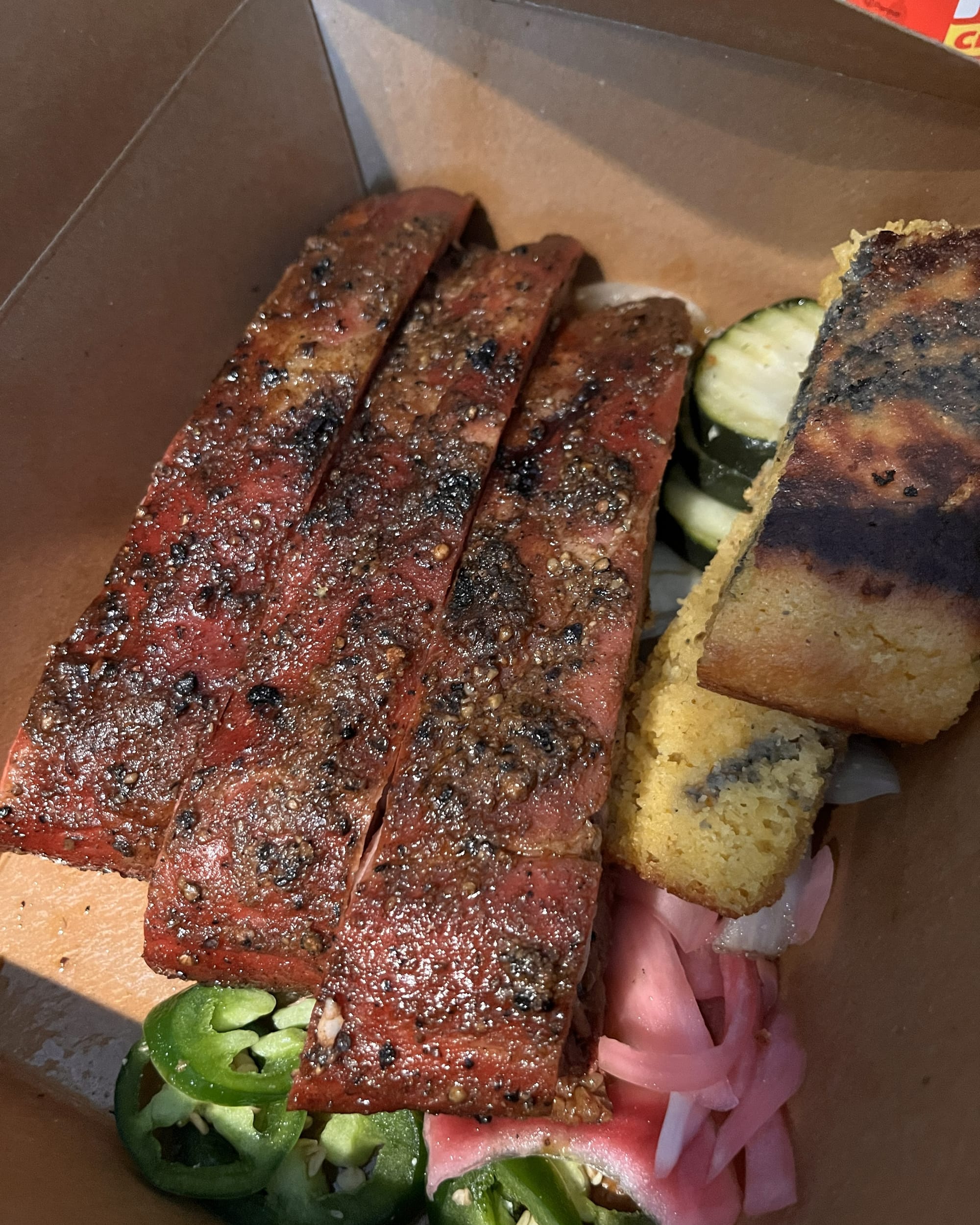 A couple of less-expensive places I enjoyed in Marfa were The Water Stop and Convenience West. The Water Stop is American food with an eclectic twist, and was voted best burger in Marfa, so of course that’s what I had. Convenience is (was, they’re apparently “on a break” at this writing) delicious BBQ, only available on Friday and Saturday. I’d heard it was one of those places you have to line up early for, but I pulled up 10 minutes before opening and was 5th in line.
