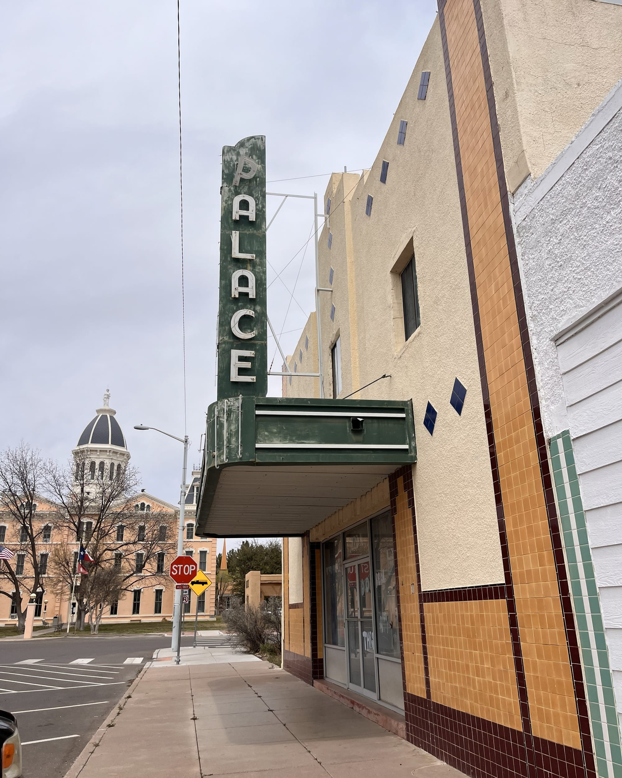 Your sign to stop in Valentine, or walk by the old theater on your way to the courthouse in Marfa. © Laura Pevehouse