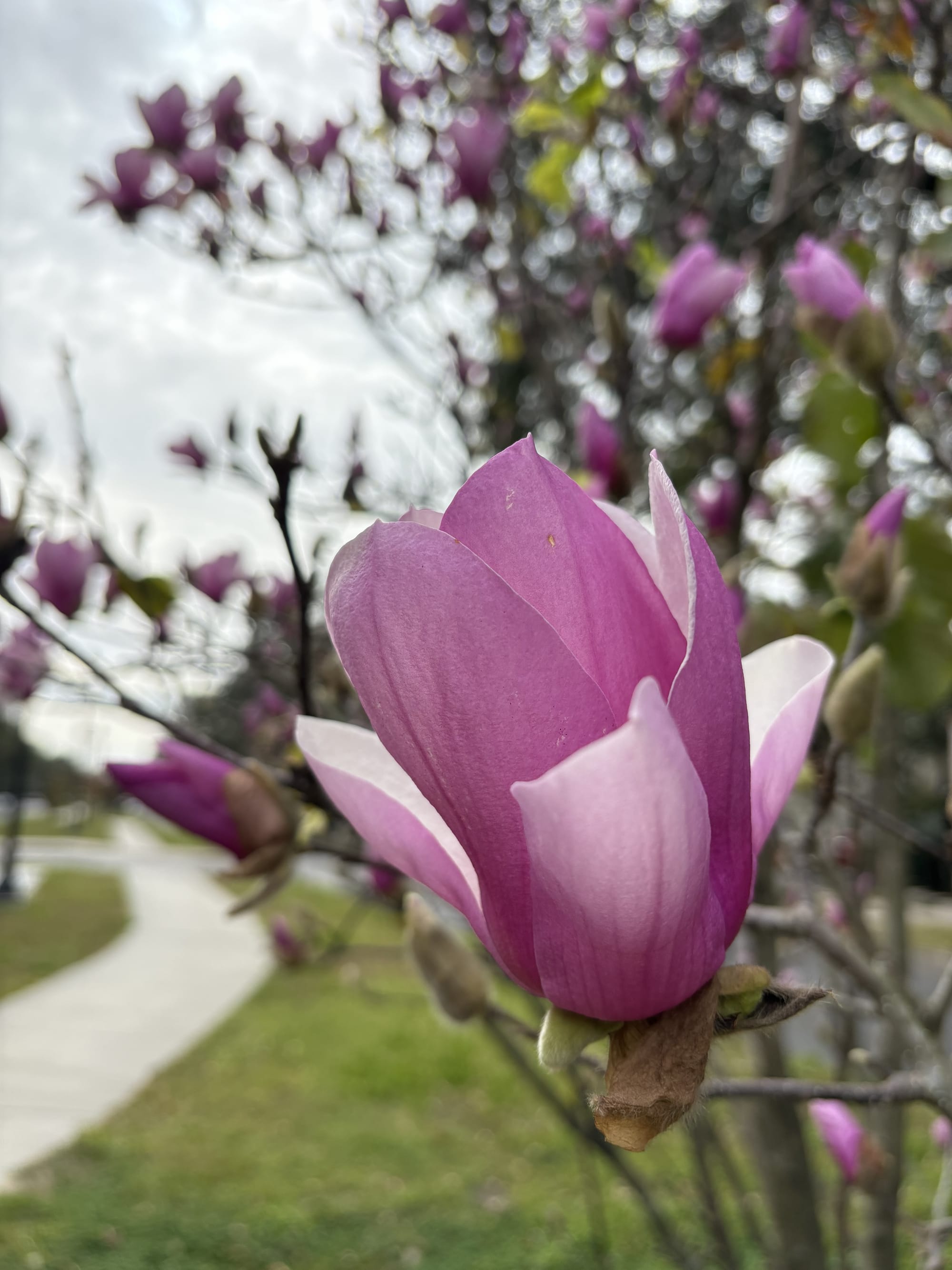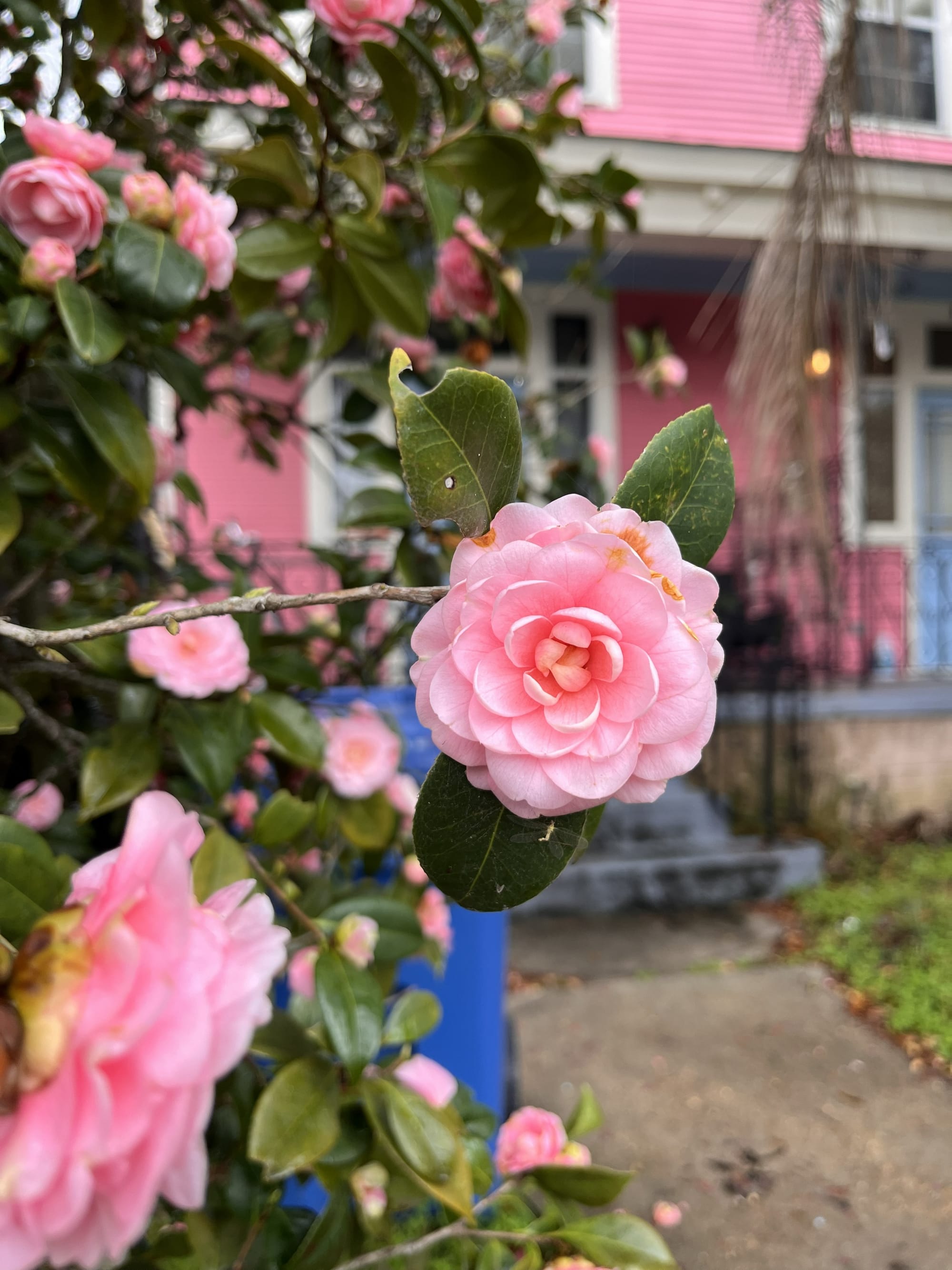 Spring time in Uptown New Orleans fills the neighborhood with beautiful blooms such as this Camillia, Anise Magnolia, and Lily Magnolia. © Laura Pevehouse