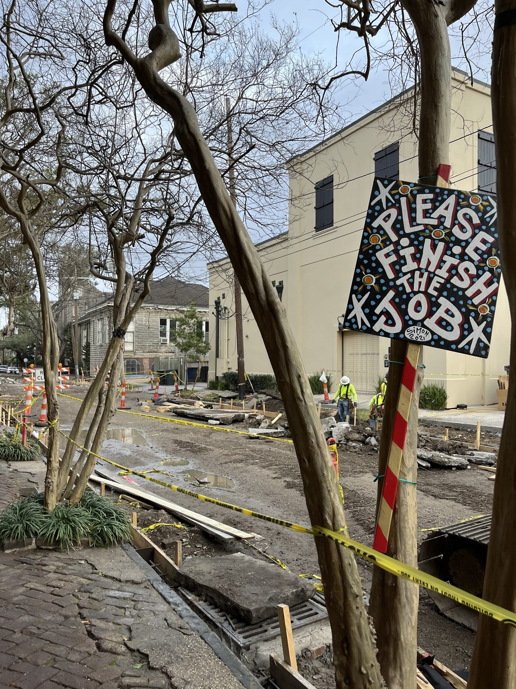 Repairs to New Orleans infrastructure have become part of daily life in the city, and its residents handle it in true style, creating art out of inconvenience at every turn. © Laura Pevehouse